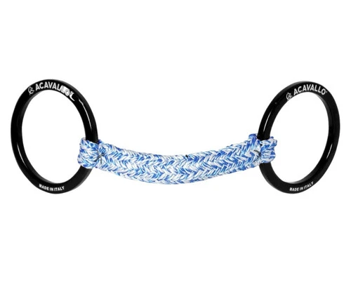 Acavallo Jumpe AluPro Bit has a unique fiber mouthpiece that is flexible and comfortable. The Jumpe mouthpiece from Acavallo is a fray-resistant twisted fiber that won’t absorb water, has high UV resistance, and is easy to clean. Unlike other soft material bits, the Acavallo Jumpe AluPro Bit may not need to be replaced as frequently. Please note, this is a fiber mouth bit and no rope-style mouth will resist fraying and damage completely.