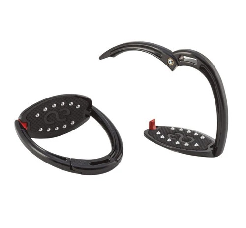 American Equus Elite Escape Safety Stirrup has a contemporary look and technology with excellent grip for improved rider safety. These stirrup irons have Escape Safety Release Technology plus a unique interchangeable traction pin system on an oval shaped footbed. The Elite Escape Safety Irons at Mary’s come with the popular Pointed Apex traction pins fitted in the footbed.