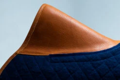 Antarès Lead Rope represents a definite step above the usual nylon lead rope for horses. This round woven nylon lead rope from Antarès has navy and a light blue/grey in a crisp pattern plus quality hardware and fine brown leather trim with cream stitching.