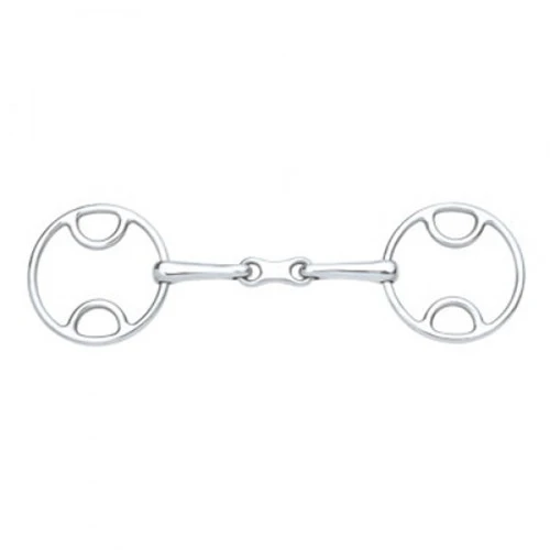Centaur French Link Mouth Loop Ring Loose Ring Gag Bit is an English snaffle bit with loose ring cheeks. Stainless steel construction has a lifetime guarantee against rust. Loose rings have separate sections for attaching bridle and reins. French link mouthpiece. Bit is available in size 5, 5.25, 5.5, and 5.75.