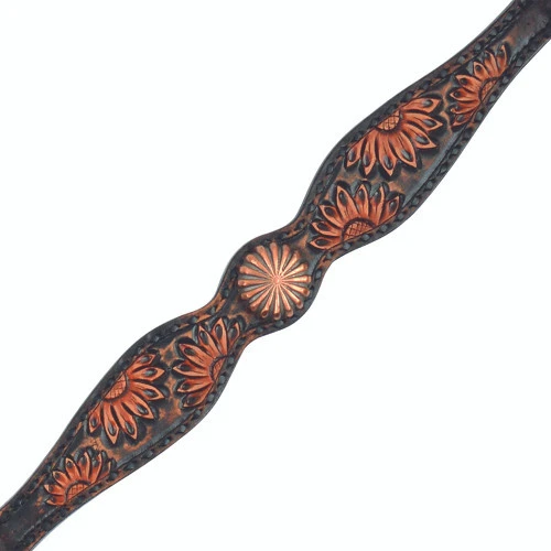 Vintage Walnut breast collar in double ply leather has durable stainless steel hardware plus fancy filigree buckles and large conchos. Circle Y Sunflower Breast Collar offers quality and beauty at a great price.