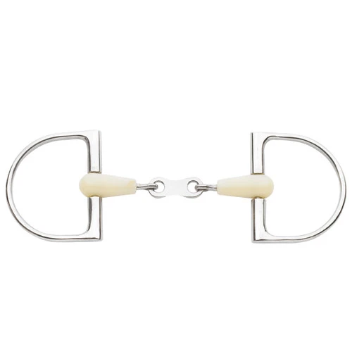 The Happy Mouth French Link Pro King Dee has stainless steel Dee rings and combines the gentle, French link, double jointed mouthpiece design with the Happy Mouth polymer covering. Unlike the regular Happy Mouth King Dee rings, the Jointed “Pro” Dee cheeks do not have the Happy Mouth covering on the cheeks of the Dee rings. Because of configuration, this bit will measure approximately 1/4 inch less than the stated size so please take this into consideration when ordering. Available at Mary’s in 5, 5 and 5 inch sizes.