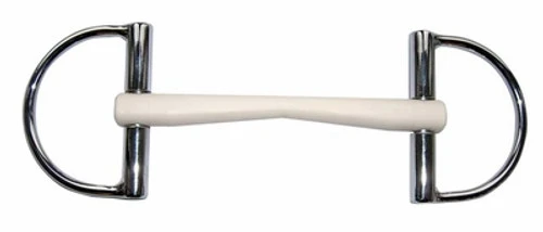 The Herm Sprenger Duo Mullen Mouth Dee Bit features a carefully shaped straight edged plastic mouthpiece that is reinforced with a steel cable for safety. The Herm Sprenger Duo bits encourage the horse to chew and are kind to the tongue and mouth. This Mullen Mouth Duo bit has a 16mm mouth and 75mm dee rings. This bit is available in sizes 4 3/4, 5 1/8 and 5 inches. Sprenger part #40 419.