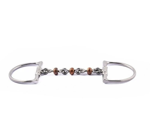Jump’in Copper Toy Waterford Dee has copper disks that allow the horse to “play” when relaxed and help prevent leaning and heaviness on the bit. The Waterford-type mouthpiece has multiple joints for flexibility and even contact on the tongue.