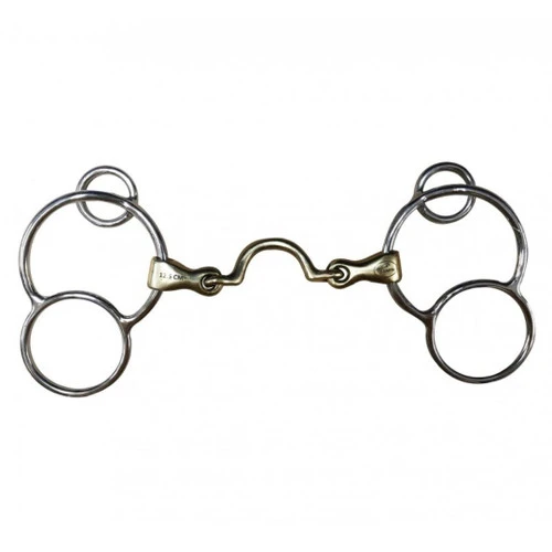 Jump’in High Port 3-Ring bit is a versatile bit for working with horses that need help with direction, not leaning on the bit, and quicker reactions. The double jointed ported mouthpiece is German Silver, an alloy that encourages salivation.