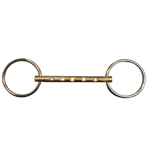 Jump’in Whistle Mouth Loose Ring is a round pipe bit with holes that collect saliva to keep the horse’s mouth very wet and soft. The Whistle Mouth Loose Ring is made with a German Silver alloy mouthpiece that increases the effect.