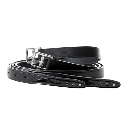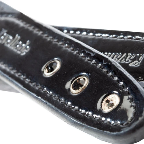 Kavalkade Fashion II Crystal Leathers will dress up your dressage saddle with a touch of luxury. Black stirrup leathers from Kavalkade have patent leather ends that are accented with three rhinestones, one each in black, grey, and clear. The effect is a nice balance of fancy and functional.