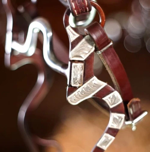 Legacy Pro Bit from Mikmar has antique bronze shanks decorated with German Silver accents. The 6″ swivel shanks are somewhat straight and offer good lateral feel and independent shoulder lift. This bit can work for competition, ranch, roping, trail, and showing. The Legacy Pro Bit can help a rider correct horses that lean, pull, root, or bolt. Good training tool to work on headset, flexion, and balance, and helping transfer weight to the hind quarters.