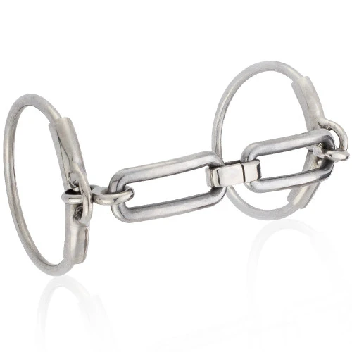 Mikmar’s Watson Snaffle unites the benefits of the unique Mikmar sweet-iron mouthpiece with the simplicity of a loose ring snaffle. Richard Watson’s main goal was to create an effective loose ring with a pinch-less cheek. The unique wide curved, link-style mouthpiece is made of Sweet Iron. This link-style mouthpiece, consisting of three joined links, is very effective. It eliminates the “nutcracker” pinching action of single- jointed bit, offering more room for the horses tongue.