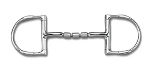 The Myler Dee Ring with Hooks Triple Barrel Mullen bit features the Myler MB 32-3 mouthpiece. Stainless Steel Dee cheeks with Hooks enable the rider to fix the bit in place and gain leverage from rein pressure. The Stainless Steel Mullen Triple Barrel has Copper Inlay Mouth for better bit acceptance. This Level 2 Myler bit comes in size 5.
