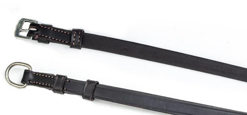 This flat leather throat latch is the perfect addition to the Flying Change Revolution Dressage Bridle. This bridle part is available in Black or Brown, in Cob and Full sizes. Beautiful vegetable tanned leather has gun metal buckles. The throat latch has D-ring hooks for the Click It browband for easy attachment to the bridle.