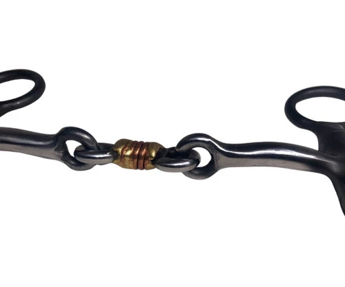 Diamond R Argentine 3-Piece Dogbone Bit from Reinsman has a curved mouth with center link. The dogbone link is wrapped with copper to give a little extra feel on the tongue while encouraging salivation. The handsome blackened shanks plus nice weight and smooth swivel action are definite pluses. This Reinsman bit is eligible for . Click now for details!