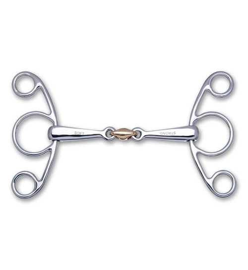 Stubben 2-in-1 Sweet Copper Link Butterfly Bit has an angular edge that stronger and a rounded edge that is softer. Simply attach the bit to the bridle according to the effect you need. A + sign and the words Soft and Strong give you the visual cues needed to attach the bit correctly. If the + sign is on the near/left side of the horse, the angular edge will be on the horse’s tongue. This bit is not approved for dressage. It is approved for jumping and eventing by the USEA, FEI, and USEA. You can try the Stubben 2 in 1 Sweet Copper Link Butterfly Bit before you commit to keeping it with the convenient . Click now for details!