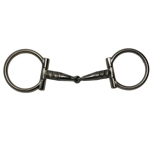 Tom Balding Large Iron Worker Dee has Tom Balding Snaffle mouthpiece with angled ridge. The ridges are found only on the mouthpiece ends, starting near the cheek and extending approximately one inch toward the center, to impact lips and bars. The Large Iron Worker D-Ring Snaffle By Tom Balding Horse Tack has a single jointed mouthpiece that allows quick action. The mouthpiece is curved to lie evenly over the tongue. This heavy, well-balanced Western bit is hand crafted in Sheridan, Wyoming.